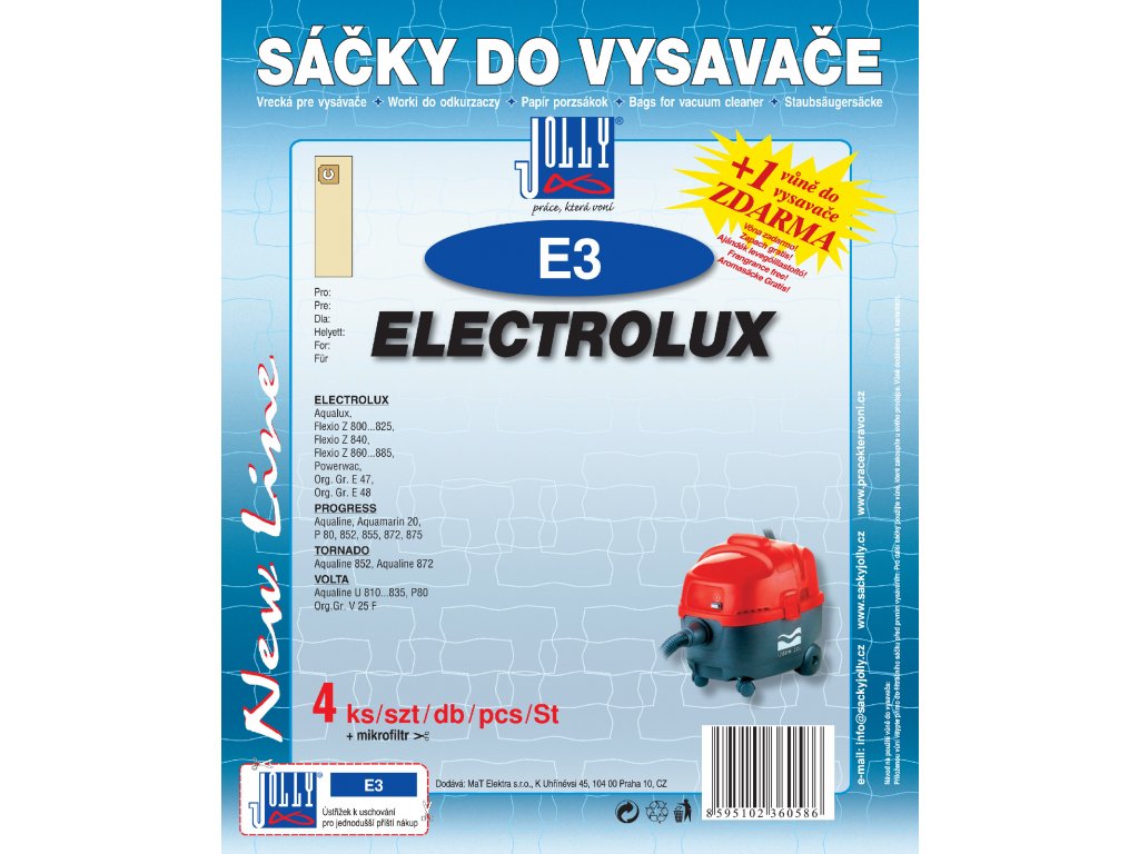 Papírové sáčky do vysavače E3. Balení obsahuje 4 ks papírových sáčků E3, vůni do vysavače zdarma, která krasně provoní Váš byt, mikrofiltr pro Váš vysavač.