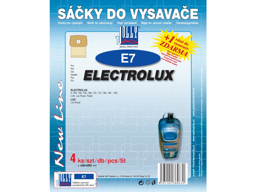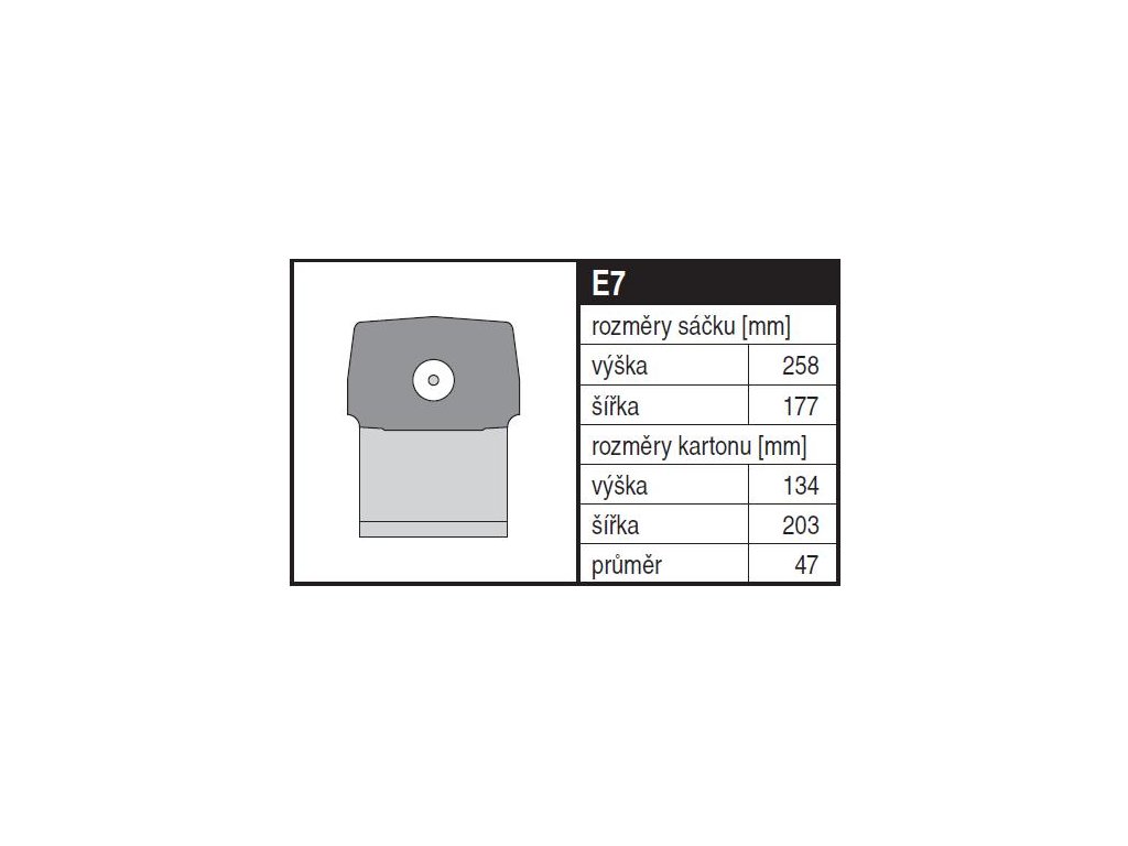 Papírové sáčky do vysavače E7. Balení obsahuje 4 ks papírových sáčků E7, vůni do vysavače zdarma, která krasně provoní Váš byt, mikrofiltr pro Váš vysavač.