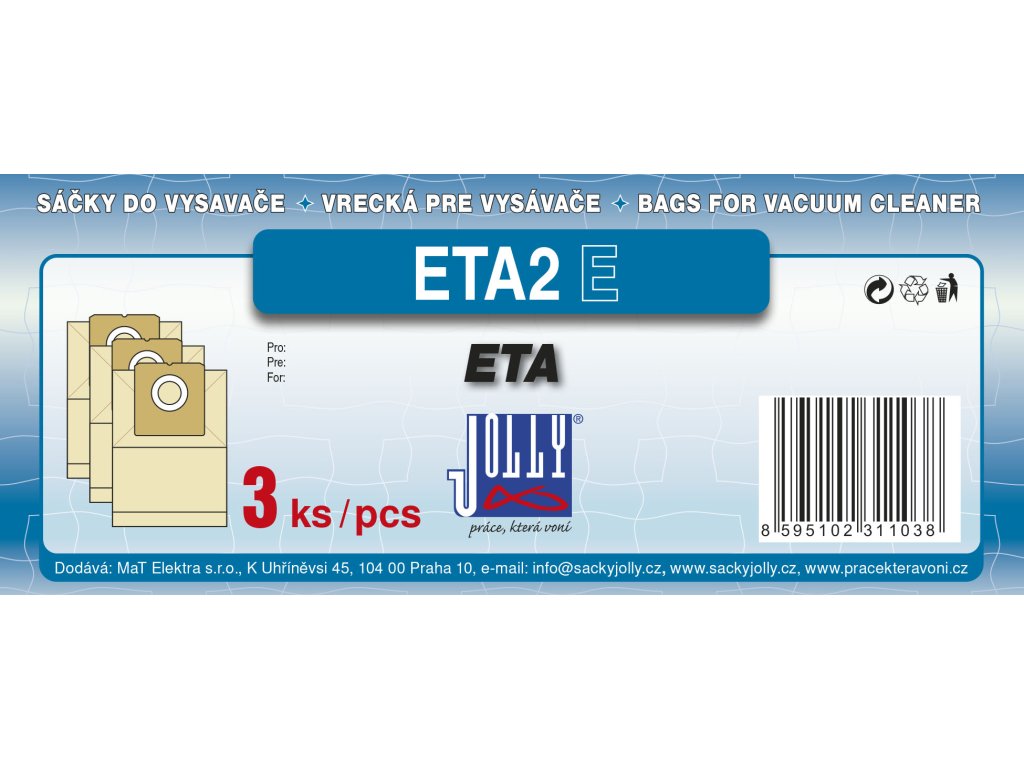 Papírové sáčky do vysavače ETA2 E ekonomické balení. Balení obsahuje 3 ks papírových sáčků Jolly ETA2 pro Váš vysavač.