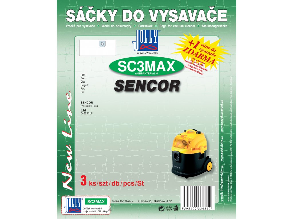 Sáčky do vysavače z netkané textilie SC3 MAX. Balení obsahuje 3 ks textilních sáčků SC3 MAX, vůni do vysavače zdarma, která krásně provoní Váš byt.