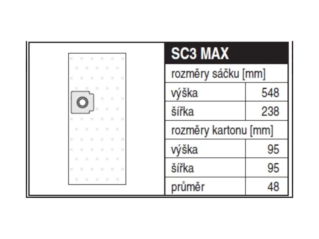 - Rozměry sáčku: 548 x 238 mm