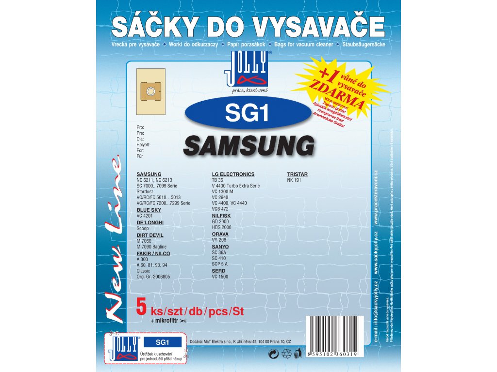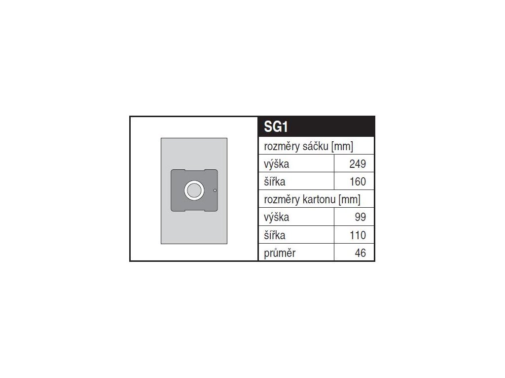 Papírové sáčky do vysavače SG1. Balení obsahuje 5 ks papírových sáčků SG1, vůni do vysavače zdarma, která krasně provoní Váš byt, mikrofiltr pro Váš vysavač.