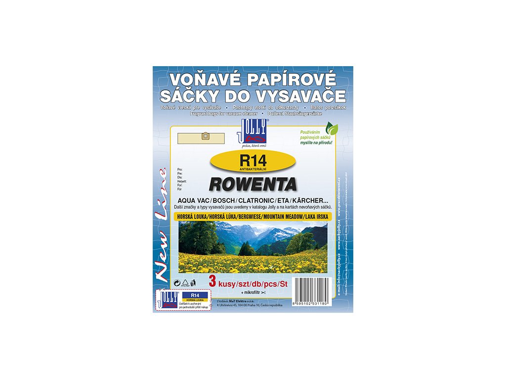 Papírové R14 Horská louka sáčky do vysavače  pro jednorázové použití výrobce Jolly, jsou vyrobeny z několika vrstev filtračních materiálů, které zaručují dokonalou filtraci prachu a vysokou pevnost sáčků.